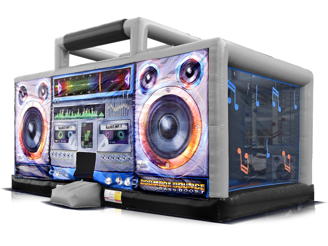Rewind the clock and step back into the 1980's with this retro-inspired boombox bounce house.